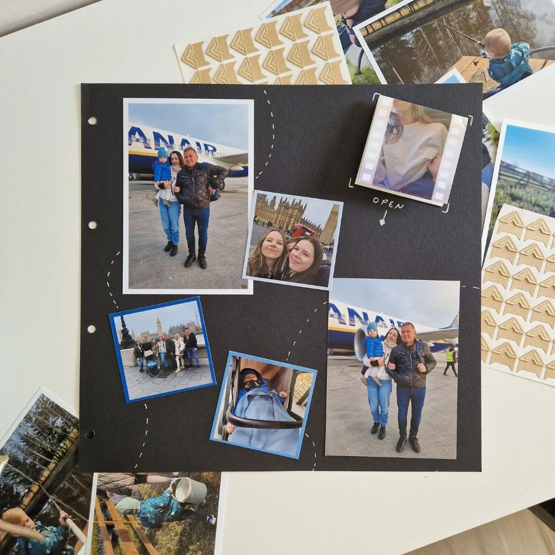 Możesz wykorzystać je jako subtelny akcent między białymi stronami albo stworzyć z nich cały tematyczny dział – wakacje, pierwszy rok dziecka, budowę domu, rodzinne święta.